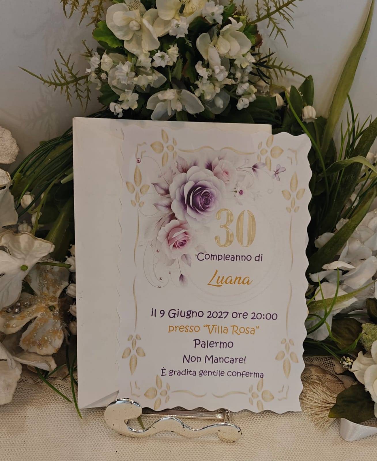 Invito personalizzato Compleanno 30 anni. Realizzato in cartoncino lucido gr. 200.