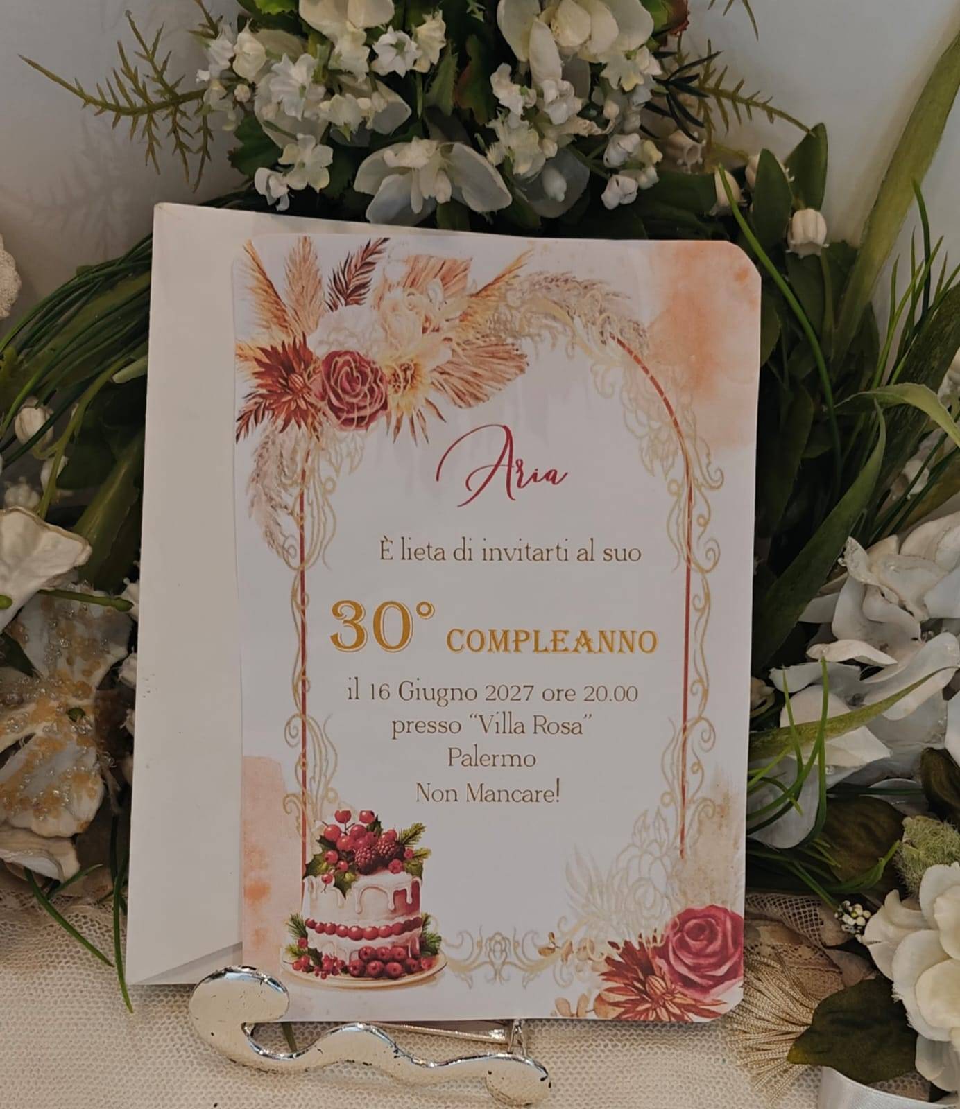 INVITO 30 ANNI DONNA CON BUSTA PAMPAS
