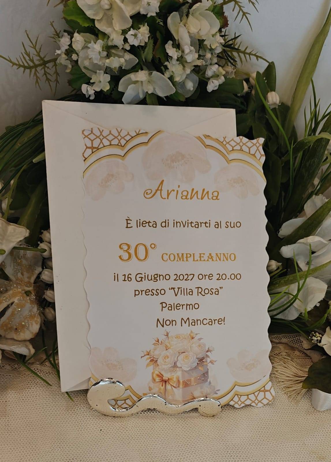 Invito personalizzato Compleanno 30 anni. Realizzato in cartoncino lucido gr. 200.