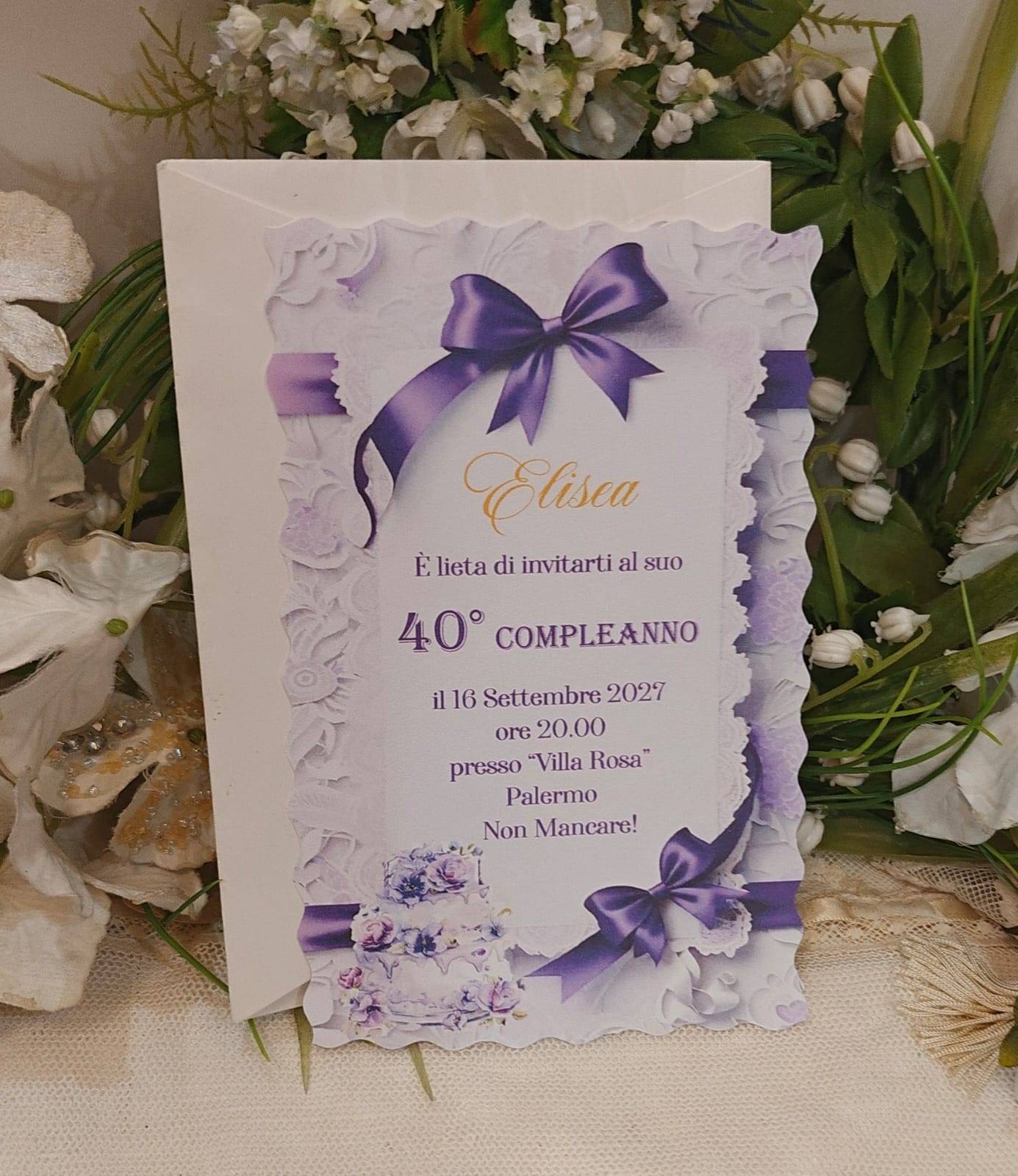 Invito personalizzato Compleanno 40 anni. Realizzato in cartoncino lucido gr. 200.