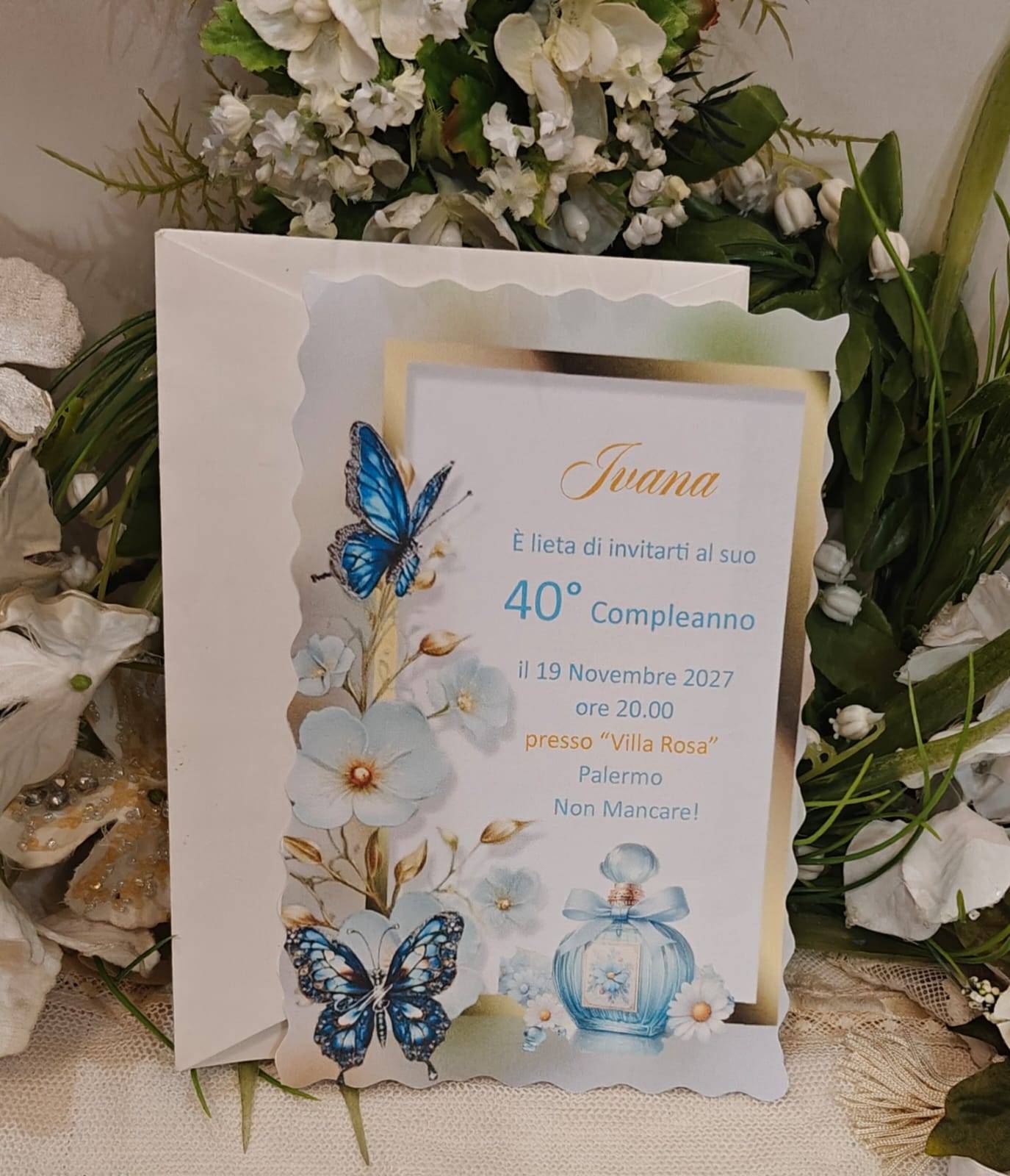 Invito personalizzato Compleanno 40 anni. Realizzato in cartoncino lucido gr. 200.