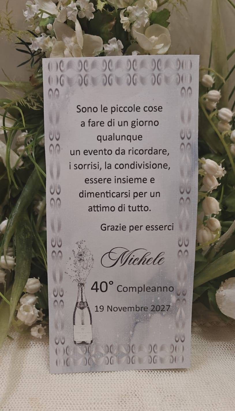 Invito personalizzato Compleanno 40 anni. Realizzato in cartoncino lucido gr. 200.