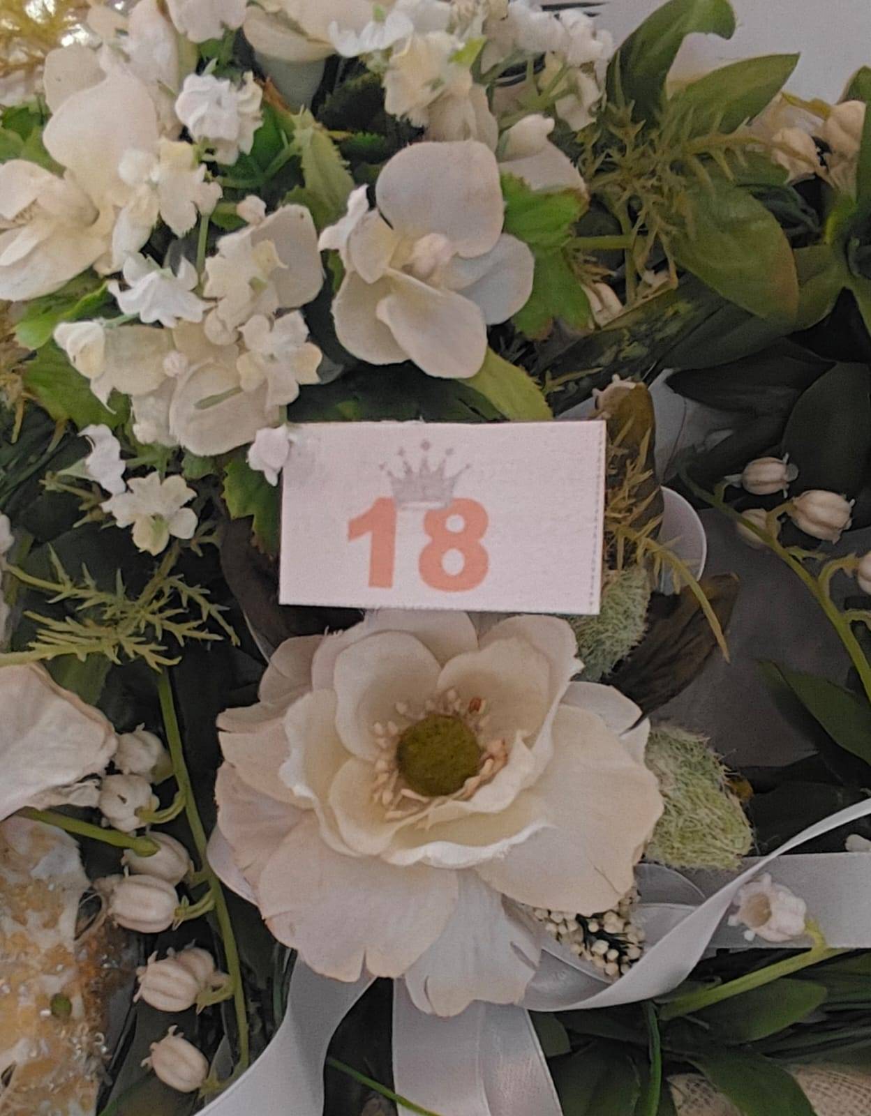 Bigliettino 18 anni in coordinato all'invito, segna tavolo, cono confettata, menù, scatolina misura 5 ×3 cm, realizzato in cartoncino pregiato gr.250.