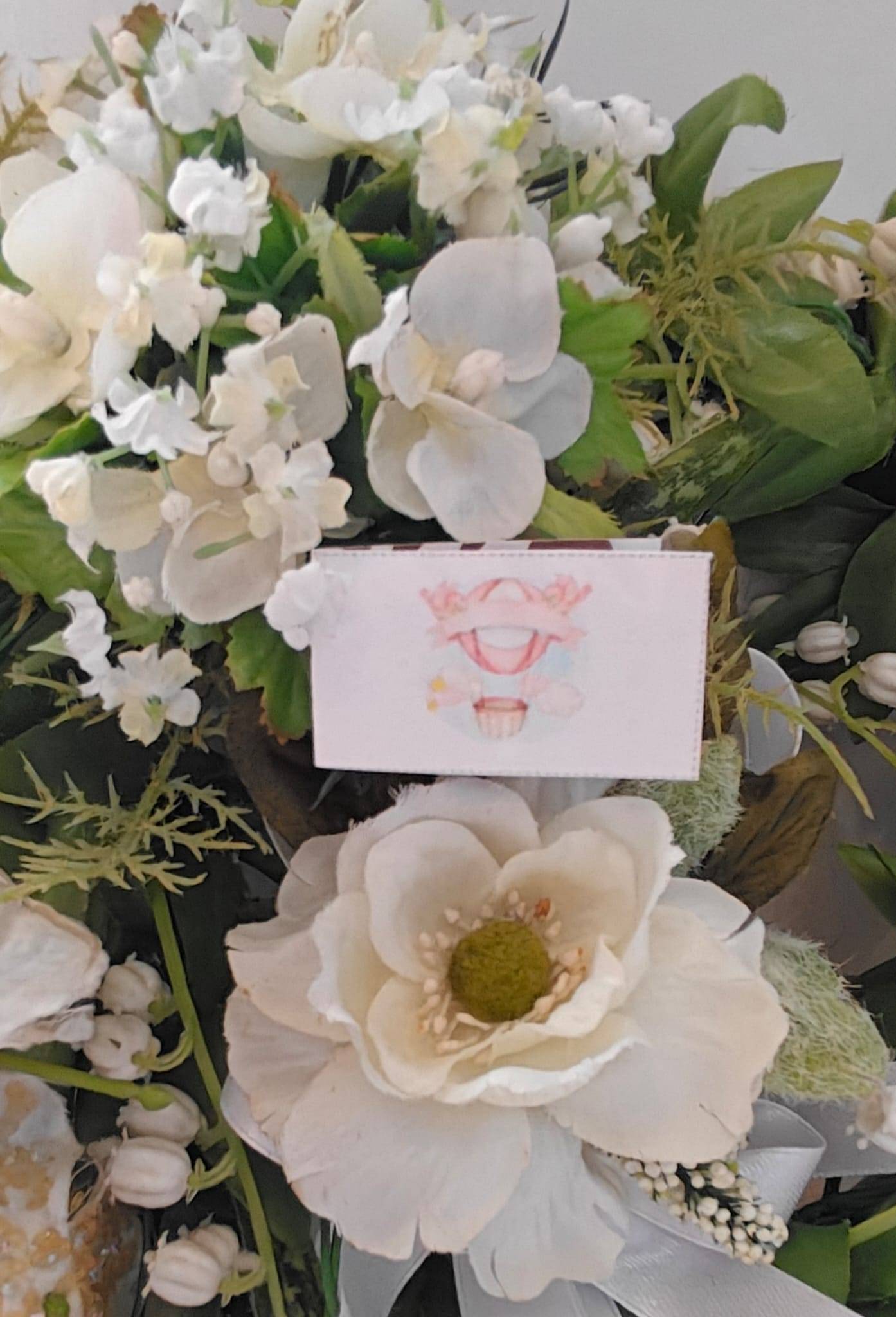 Bigliettino Nascita in coordinato all'invito, segna tavolo, cono confettata, menù,