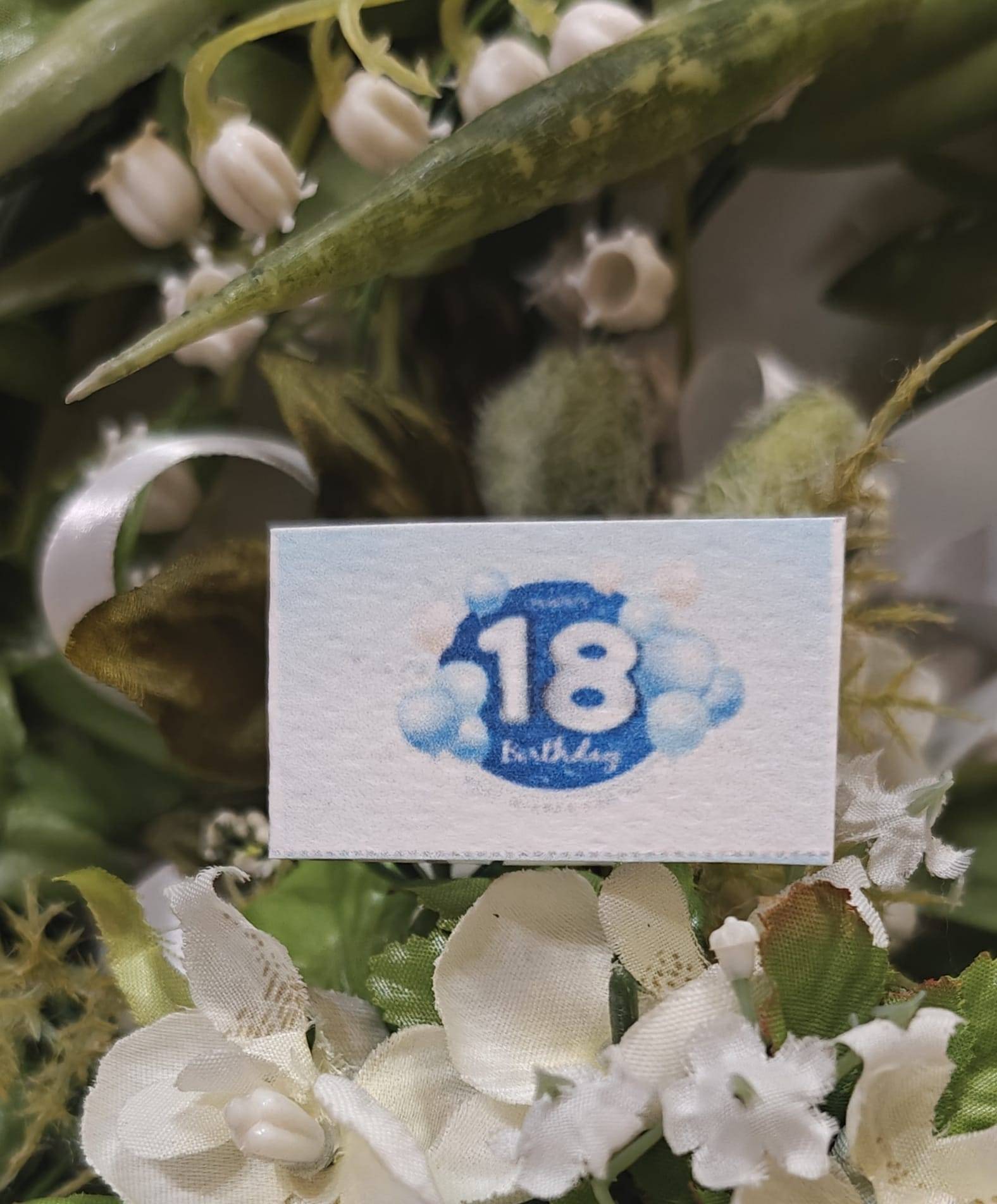 Bigliettino 18 anni in coordinato all'invito, segna tavolo, cono confettata, menù, scatolina misura 5 ×3 cm, realizzato in cartoncino pregiato gr.250.
