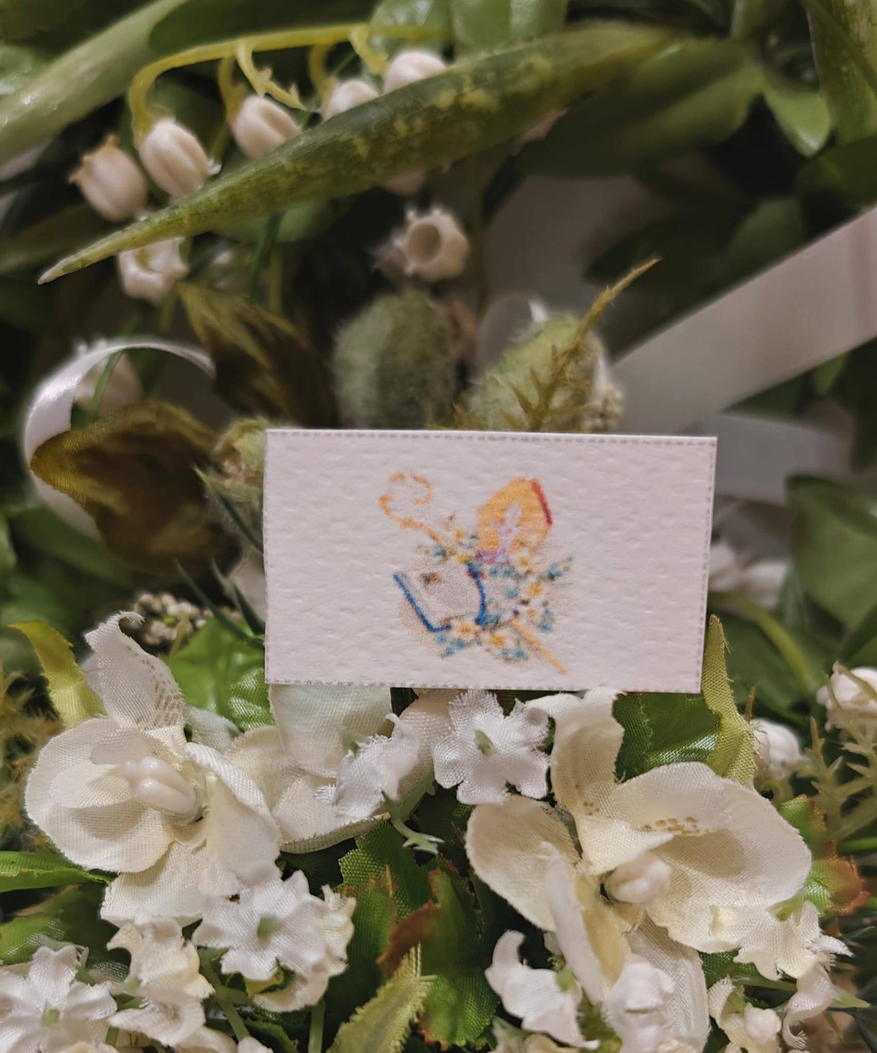 guest book, tableau su richiesta con buchetto, misura 5 × 3 cm, realizzato in cartoncino pregiato gr.250.