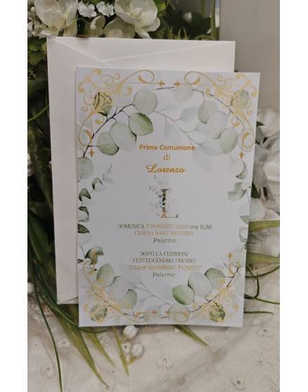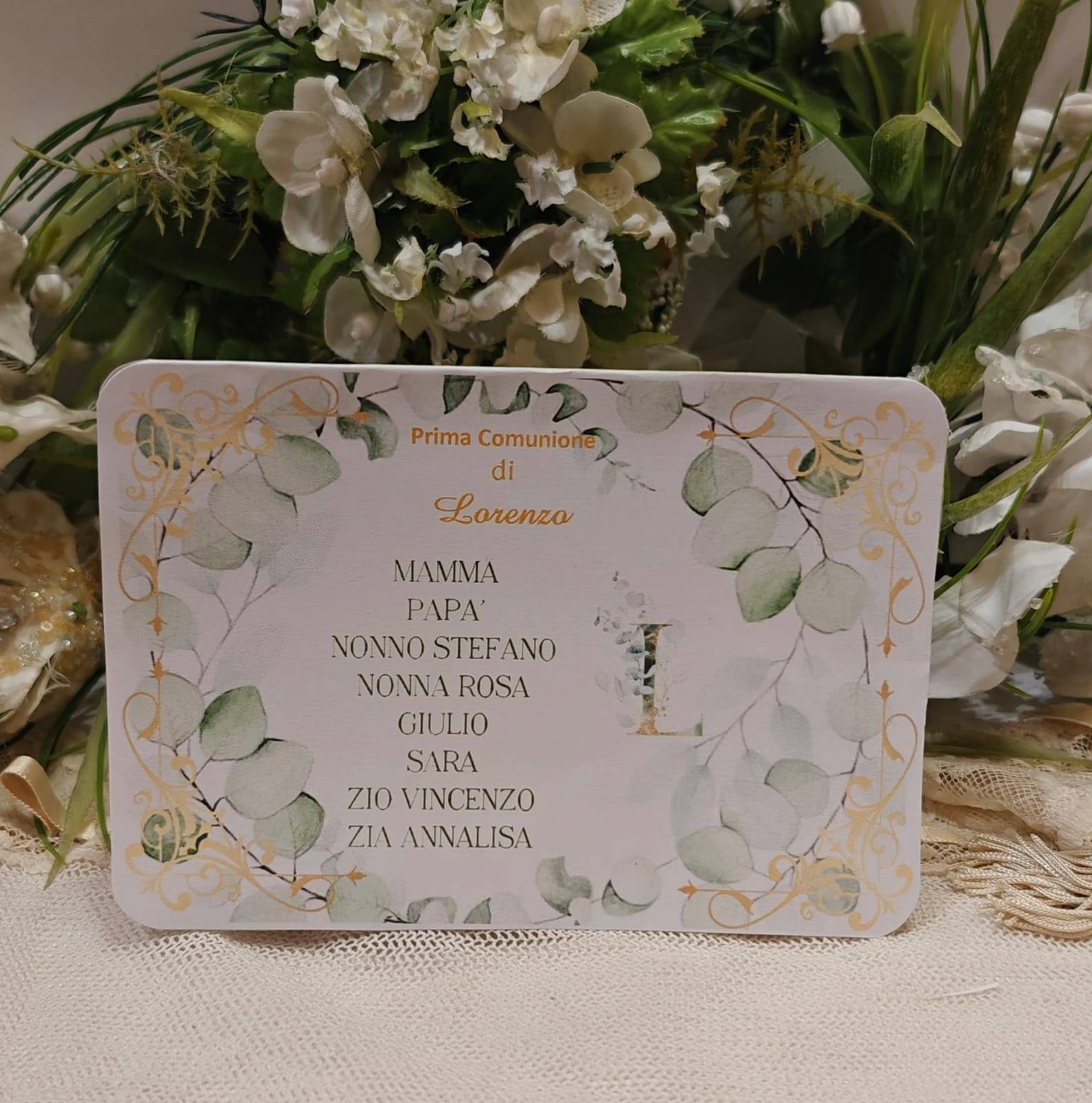 Segnatavolo Prima Comunione con i nomi degli invitati piegato cm. 20 x 14