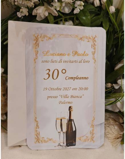 Personalizza il tuo invito come desideri. Una volta scelto l'articolo, potrai richiedere modifiche e personalizzazioni che rispecchiano appieno i tuoi gusti. Dai colori accattivanti al tema specifico o al carattere del testo, rendi il tuo invito veramente unico e speciale.