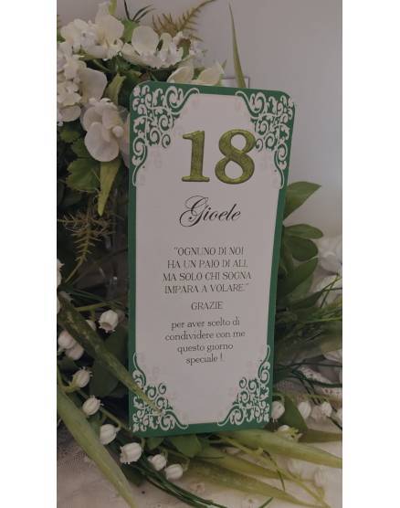 Segna tavolo 18 anni, realizzato in cartoncino piegato da appoggio.