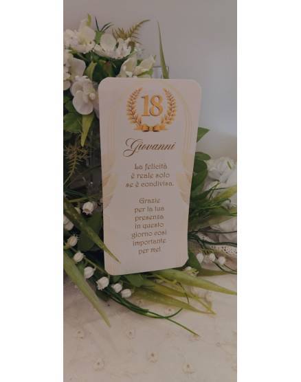 Segna tavolo 18 anni, realizzato in cartoncino piegato da appoggio.