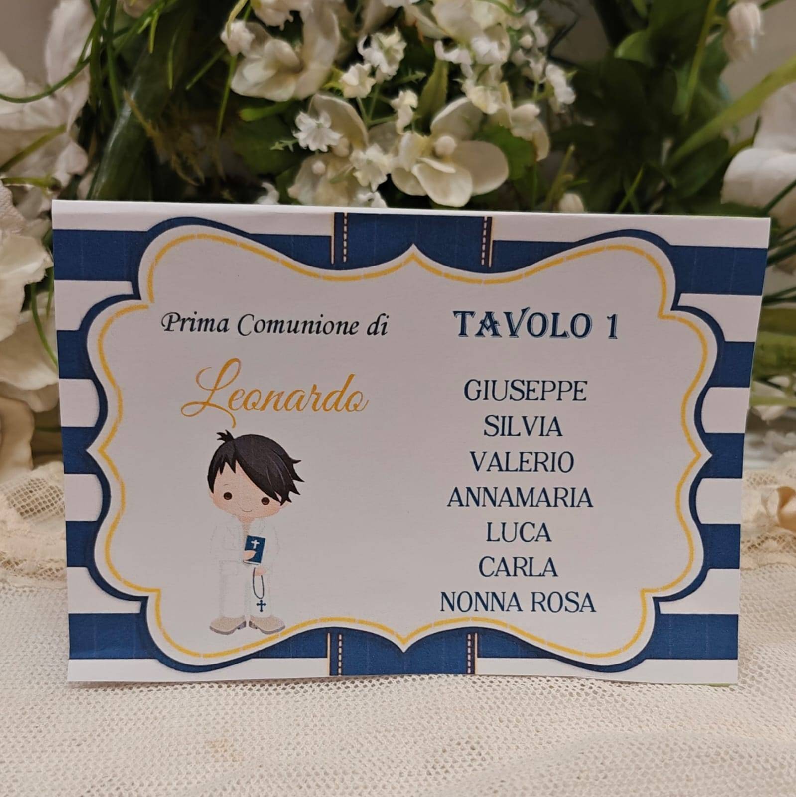 Segnatavolo Prima Comunione con i nomi degli invitati piegato cm. 20 x 14