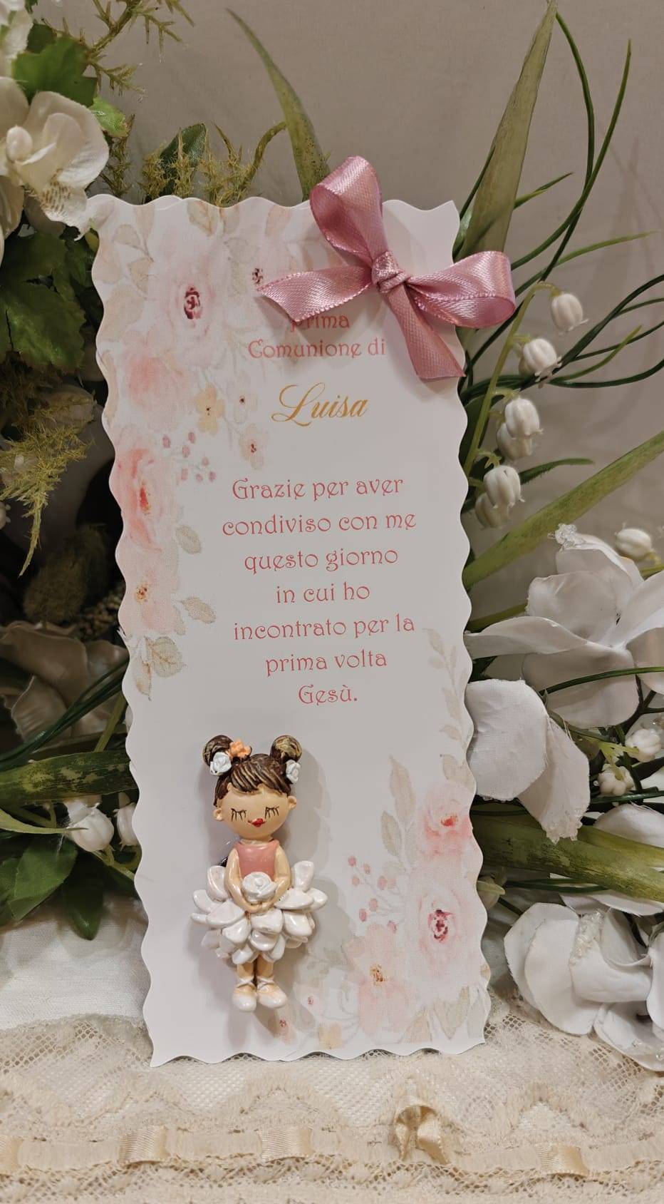 Segnalibro personalizzato Prima Comunione ballerina magnete con pensierino da posizionare sopra il tovagliato nella location dove festeggiate le vostre ricorrenze come segnaposto si può aggiungere anche il nome degli invitati.