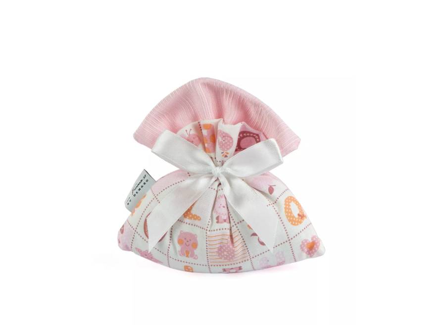 Sacchetto nascita con decoro animaletti completo di confetti cm.13 x 14