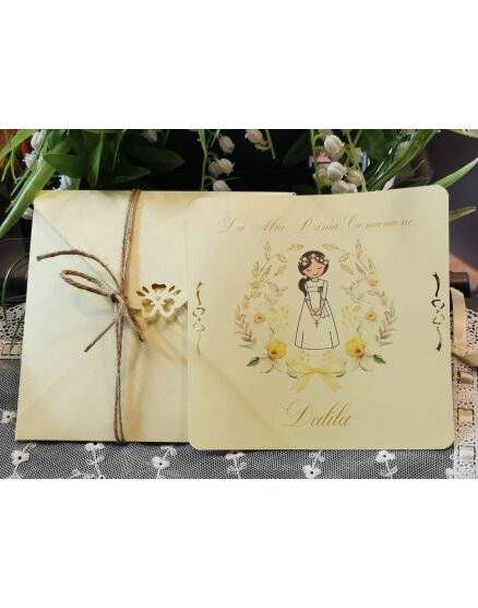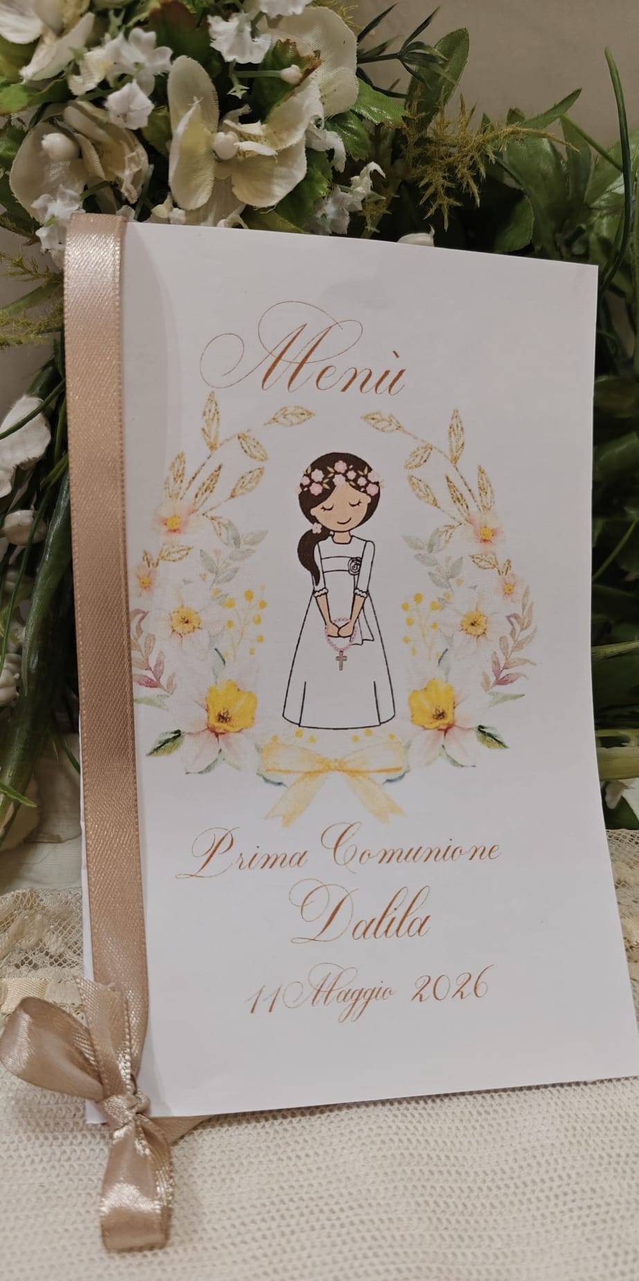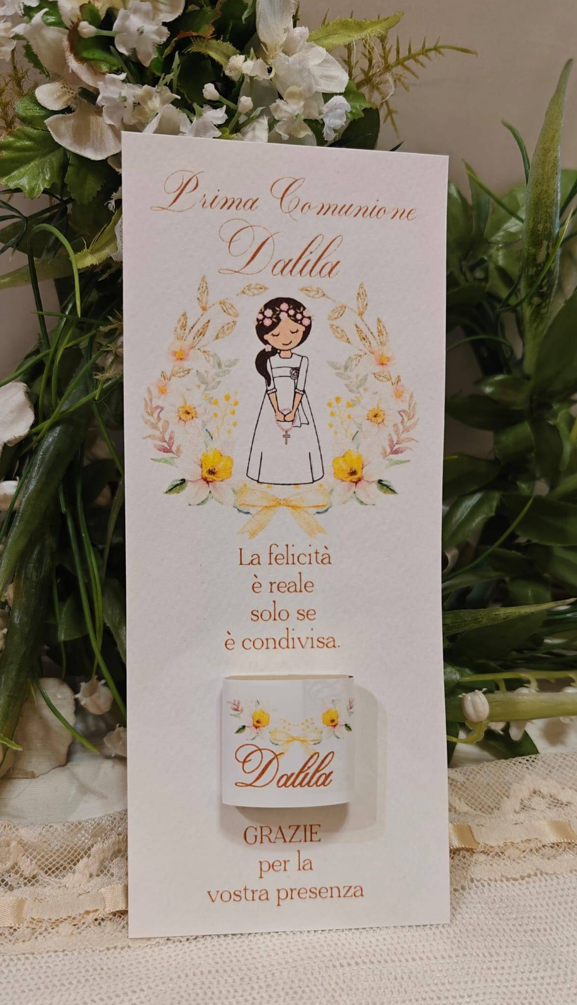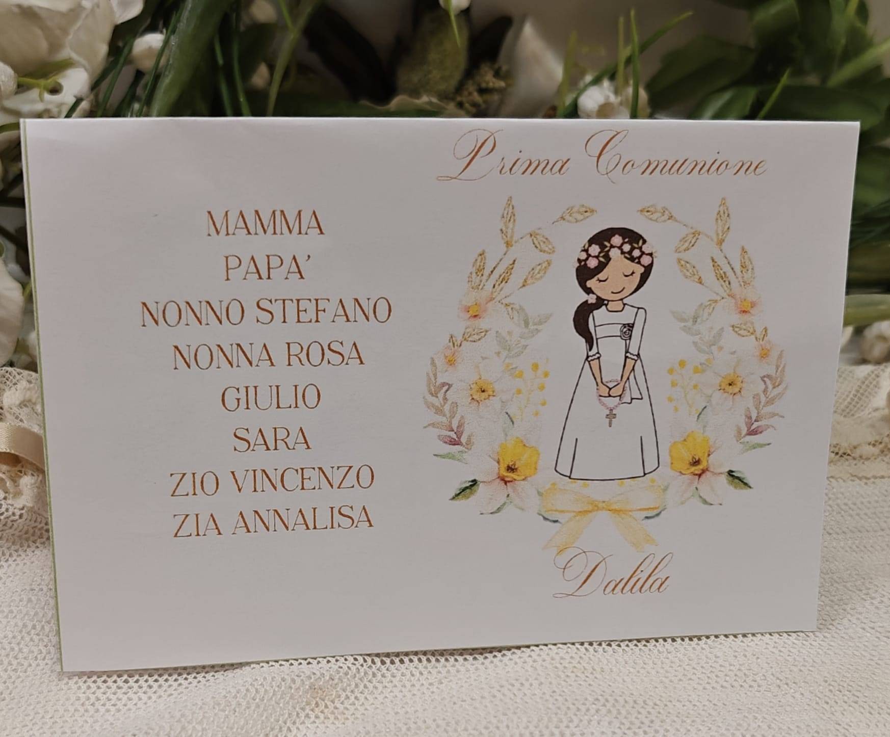 Segnatavolo Prima Comunione con i nomi degli invitati piegato cm. 20 x 14