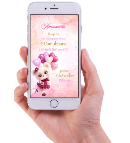 INVITO DIGITALE COMPLEANNO ORSETTO PALLONCINI