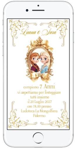 INVITO DIGITALE COMPLEANNO FROZEN GEMELLE