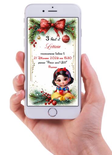 INVITO DIGITALE COMPLEANNO BIANCANEVE NATALIZIO