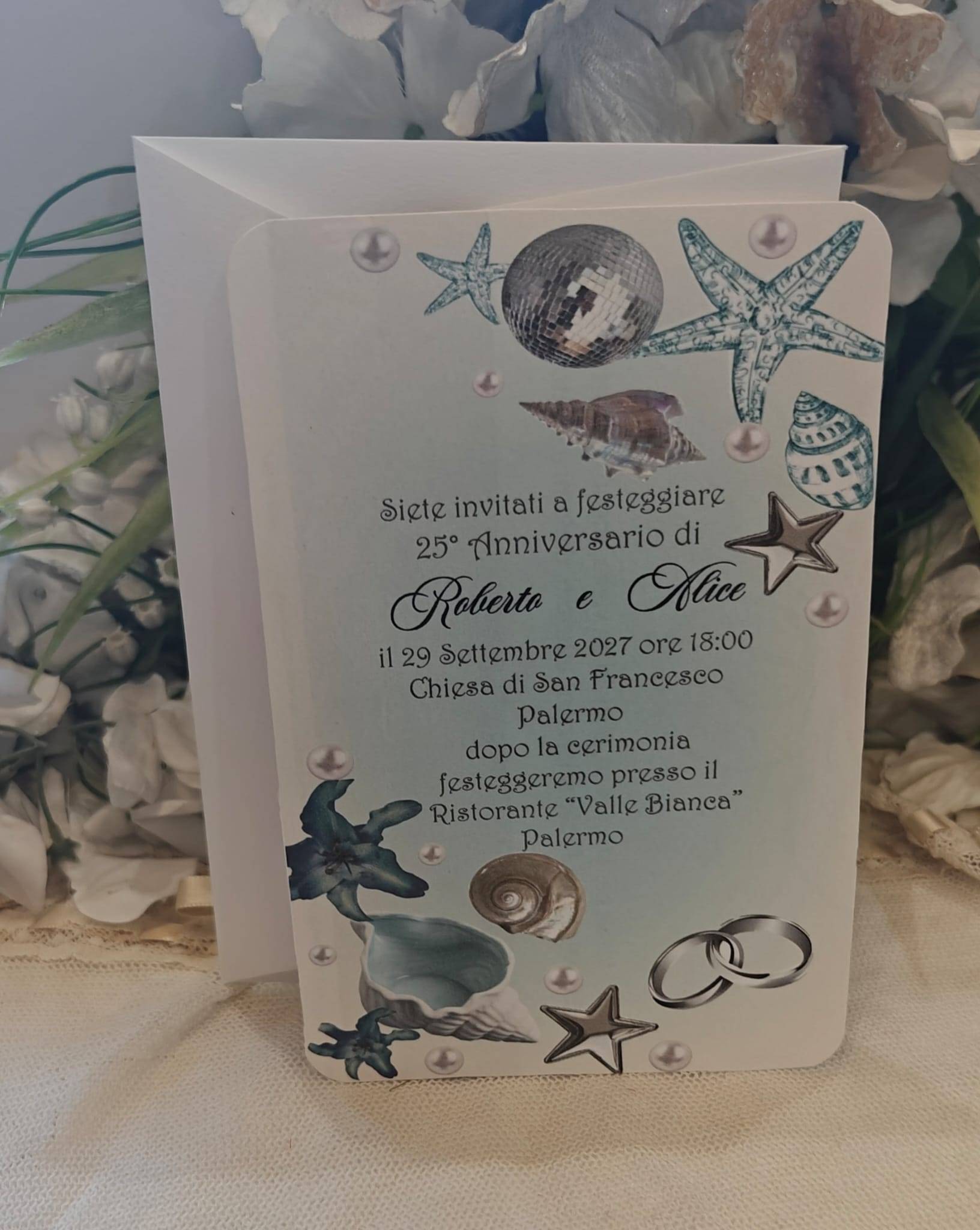 Invito Anniversario Matrimonio 25° marino con busta