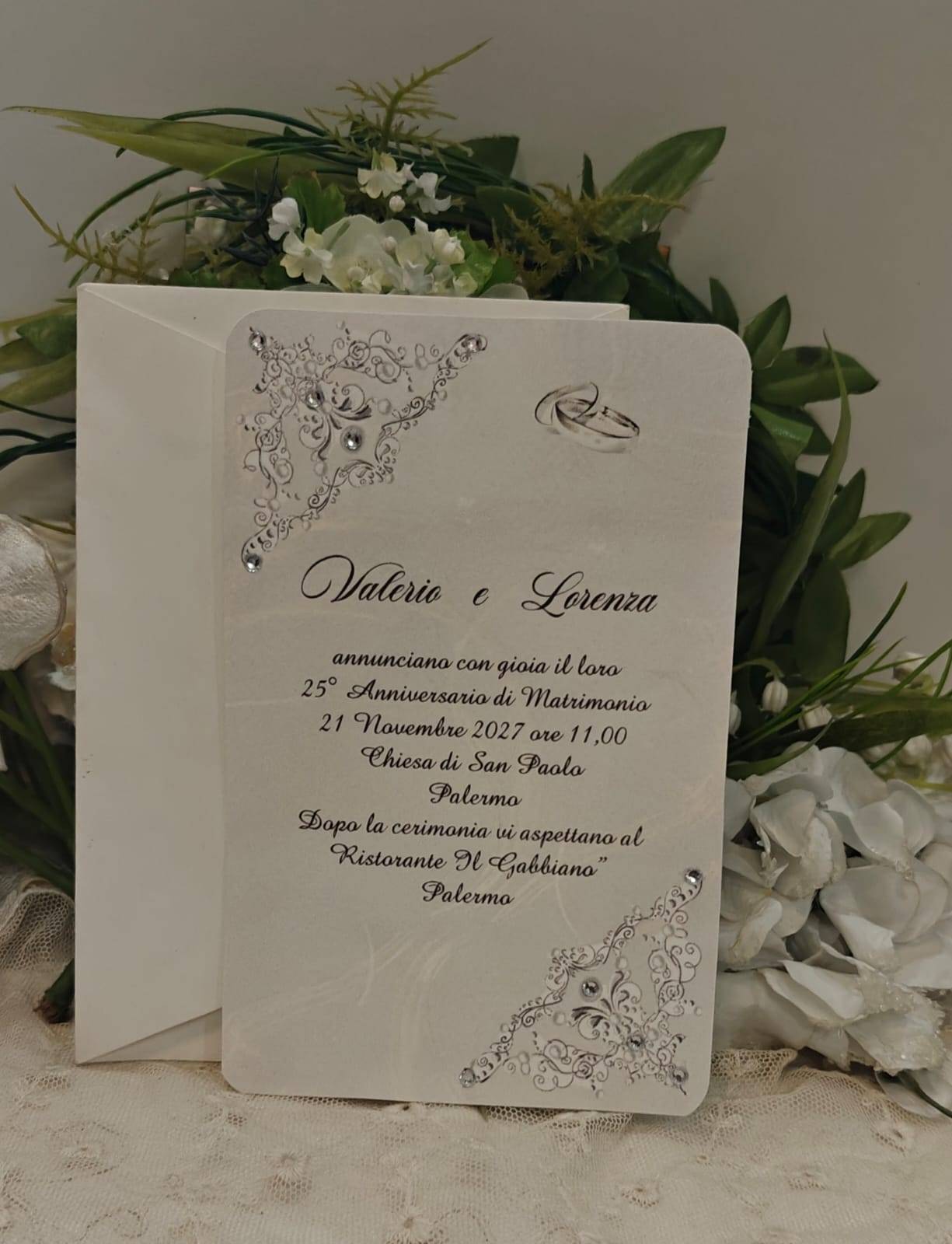 INVITO NOZZE D'ARGENTO CON CRISTALLI DI STRASS