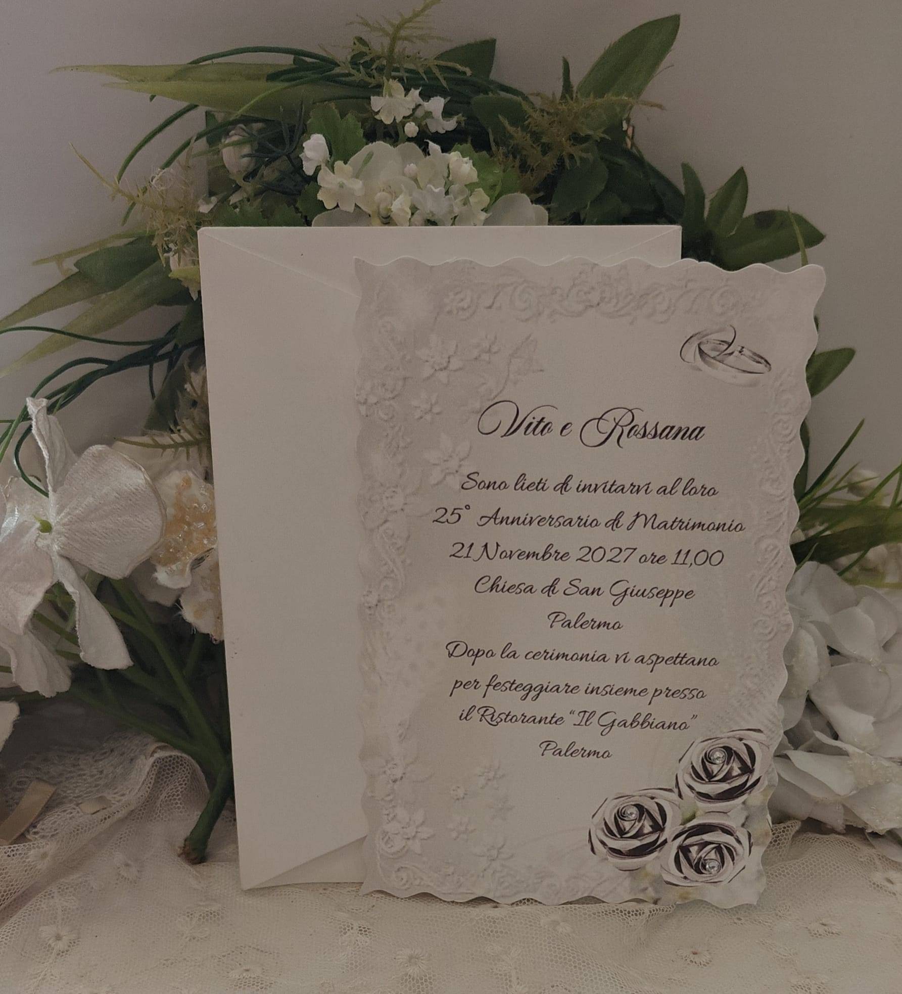 INVITO NOZZE D'ARGENTO CON CRISTALLI DI STRASS